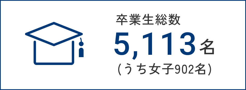 令和7年7月1日現在、卒業生総数は、表に示すとおり48期生までの5,113名(うち女子902名)です。このうち、39期生までの3,820名(うち女子484名)が義務年限を終了しています。卒業生全体をみると、病院等での勤務・研修、あるいは開業している者等の人数は、4,692名(91.8%)です。