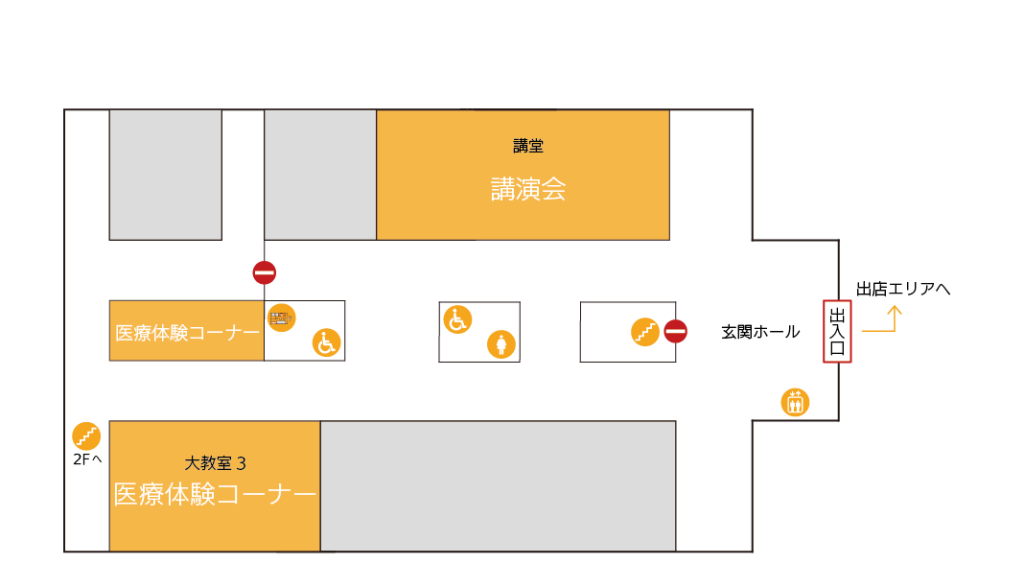 2階 (医療体験コーナー横の階段をご利用ください)