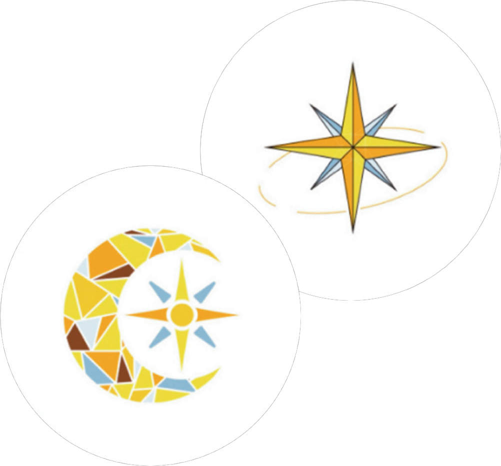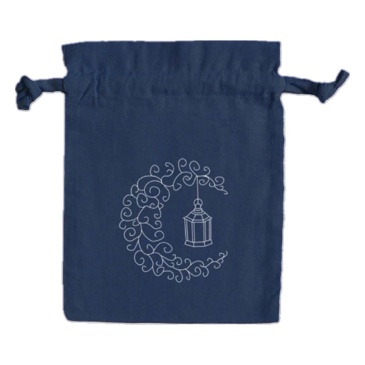 ロゴにもなっている月と「煌」から着想したランプを組み合わせたデザインです。手書き風のデザインが巾着に相性抜群です。