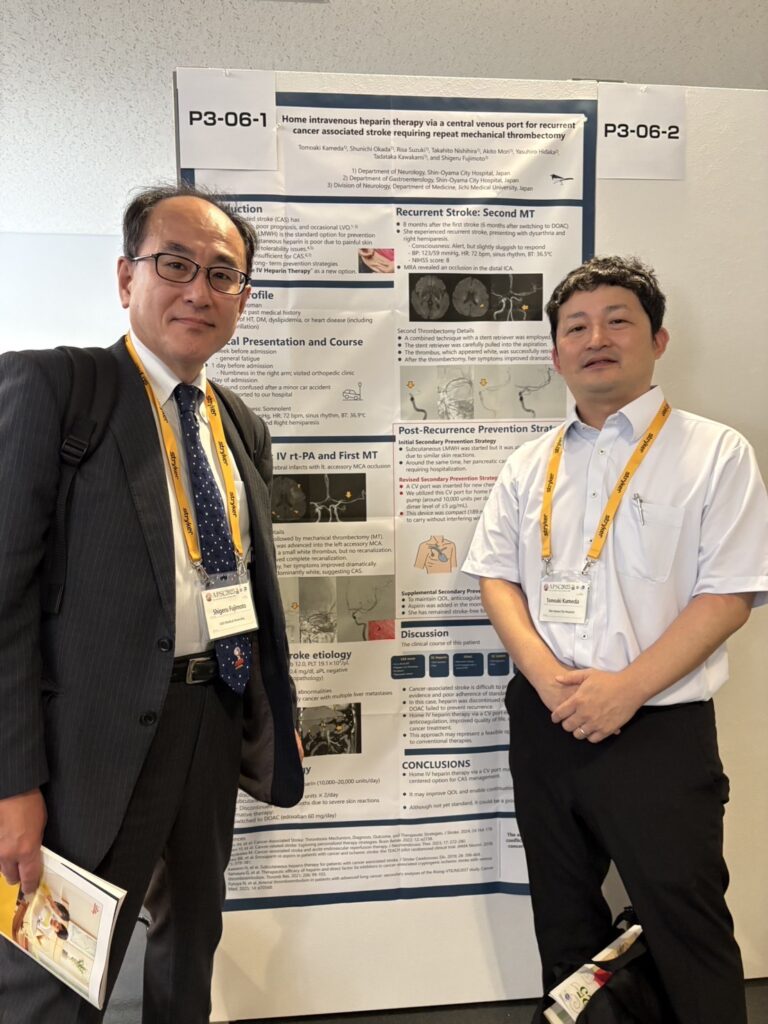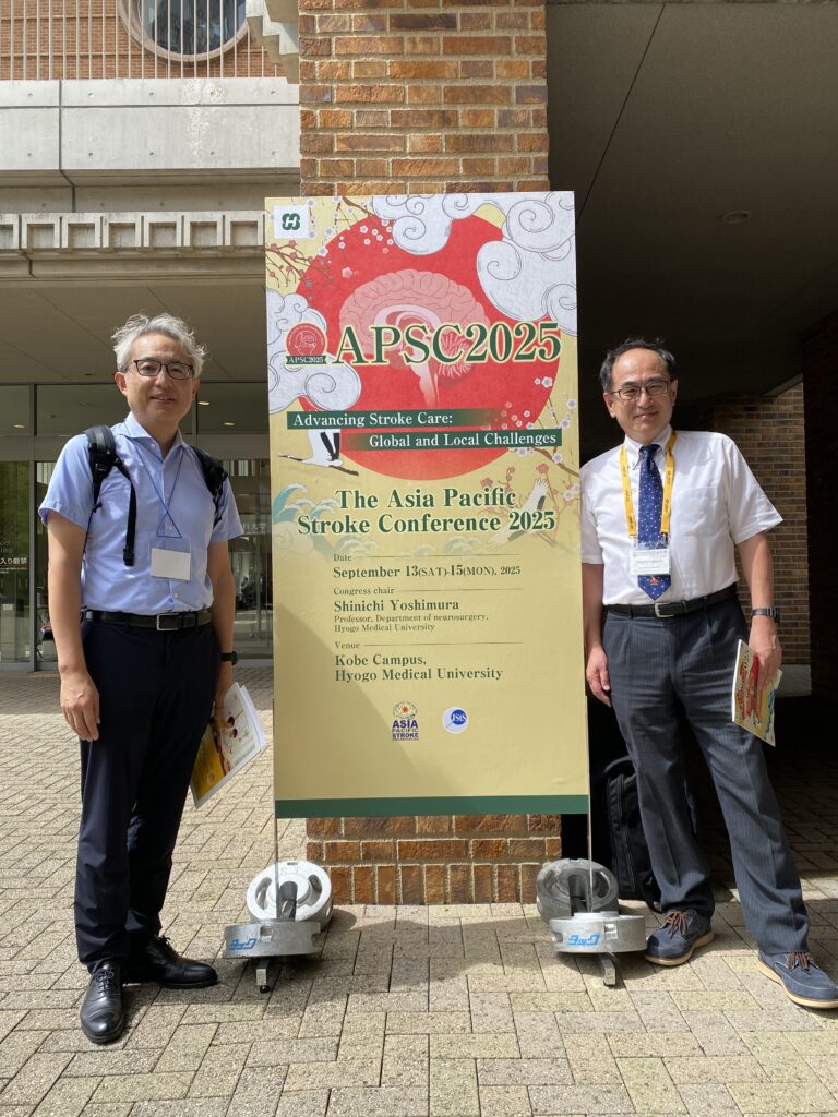2025.12.15 学会関連について Asia Pasific Stroke Conference 2025に藤本教授、田中教授、亀田先生が出席しました 神戸で開催された Asia Pasific Stroke Conference 2025 に藤本教授、田中教授、新小山市民病院の亀田知明先生が出席、発表されました。多くの海外の研究者が兵庫医大神戸キャンパスに集い、最新の研究データについて議論を交わしました! 田中教授と藤本教授 亀田先生の発表 WSO presidentのPandian教授と一緒に! 前の記事へ お知らせ一覧へ 次の記事へ
