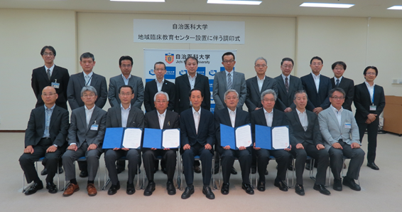 本学および大学拠点病院(本学と連携した地域中核病院)における卒前・卒後教育、研究の充実と発展を図るために、本学並びに新小山市民病院、JCHOうつのみや病院、とちぎメディカルセンターしもつがおよび芳賀赤十字病院に「自治医科大学地域臨床教育センター」が設置され、平成28年7月2日(土)にセンター設置に係る調印式が地域医療情報研修センター大会議室において実施されました。