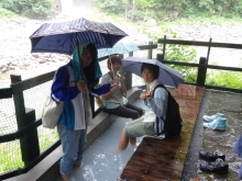 大会の疲れを足湯で癒します |