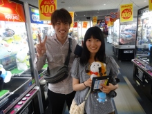 | 1年生の女の子も大きいぬいぐるみに挑戦 |