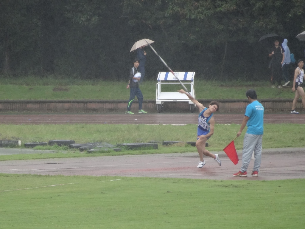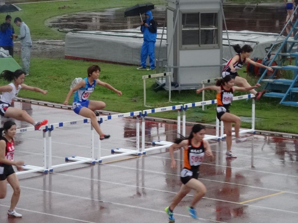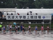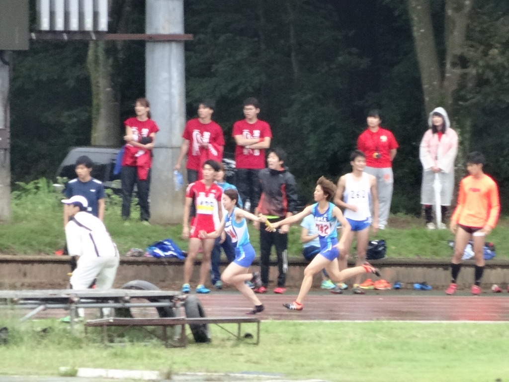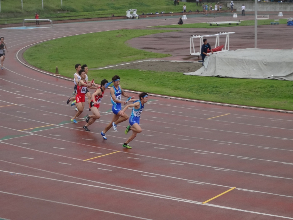 男子四継 一走のたたから二走のハンマーへのバトンパス |