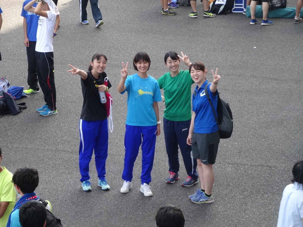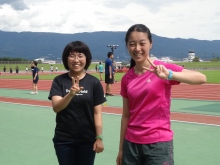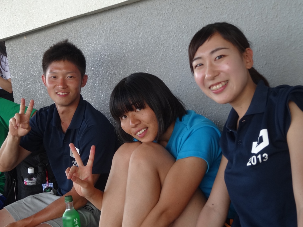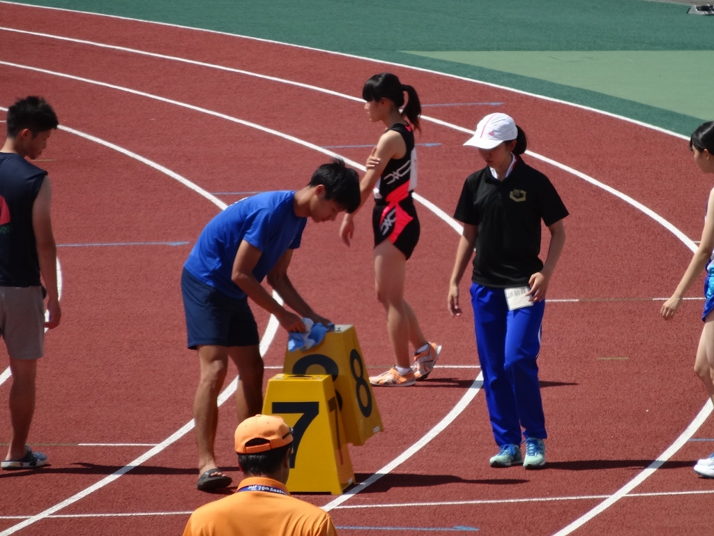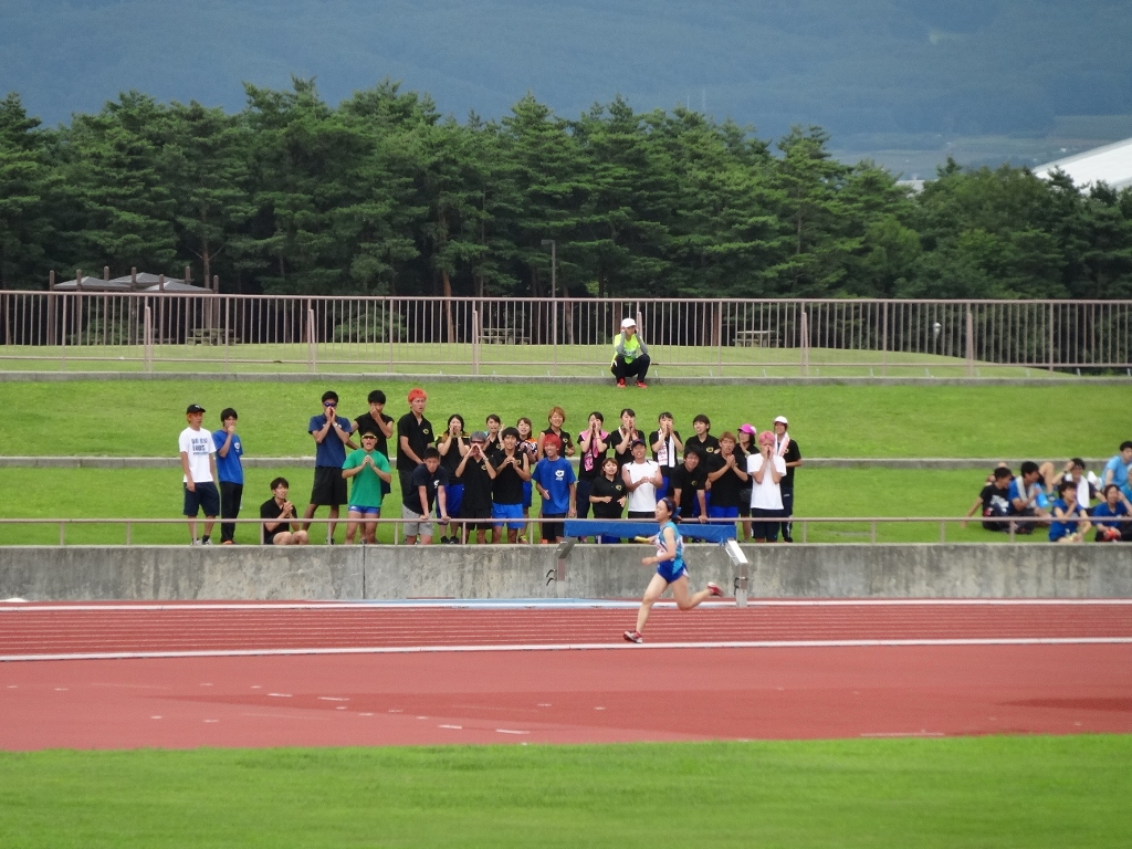 | 女子4継決勝 1走のもりぞーから2走のうるさんへのバトンパス |