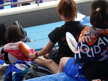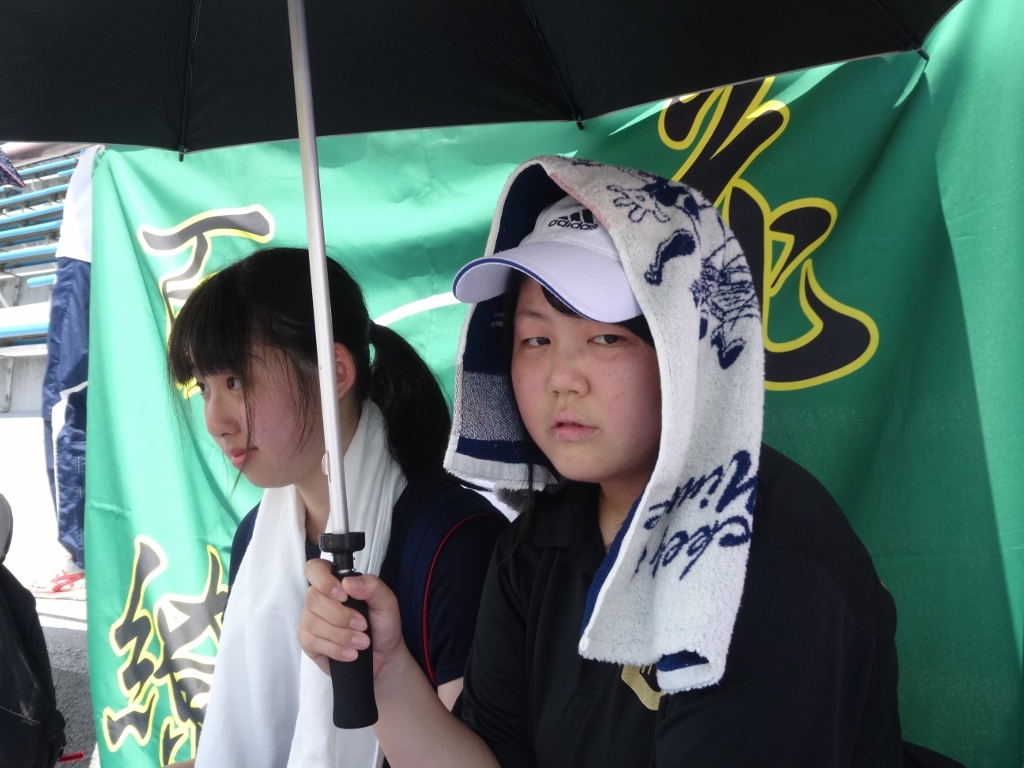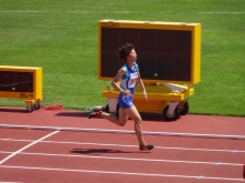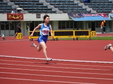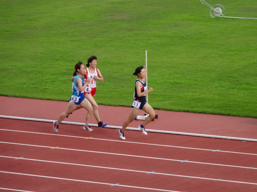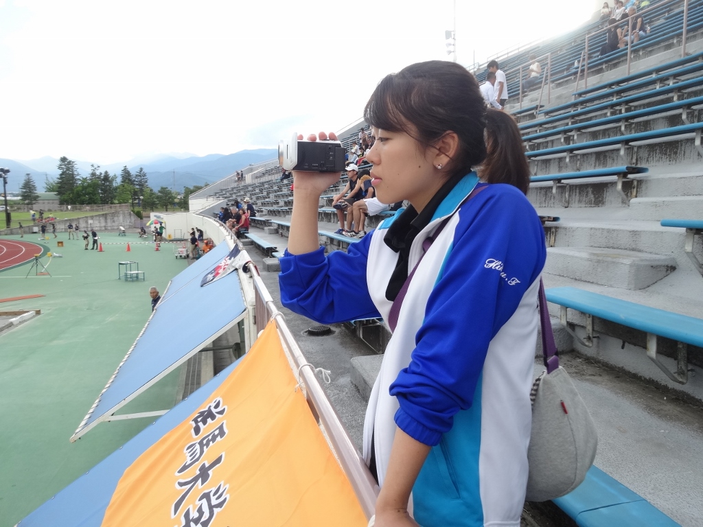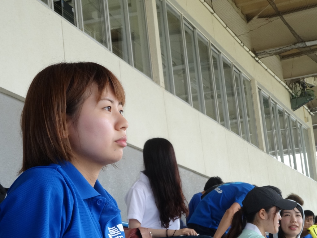 | 女子4継決勝 1走のもりぞーから2走のうるさんへのバトンパス |