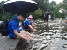 暑いので近くの噴水で休憩 |