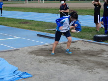 女子は走り幅跳びから!ナッツが走幅跳をしています |