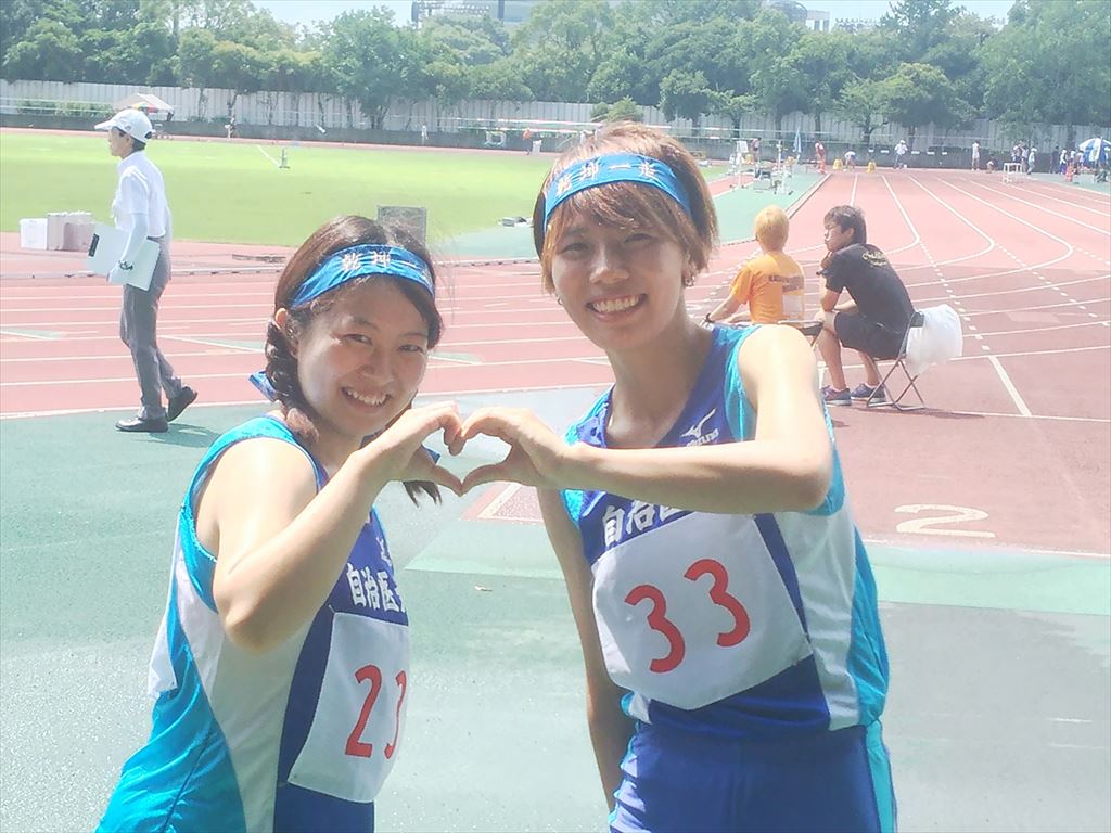 | 女子4×100mR 走るみさきちさん、構える香南ちゃん |