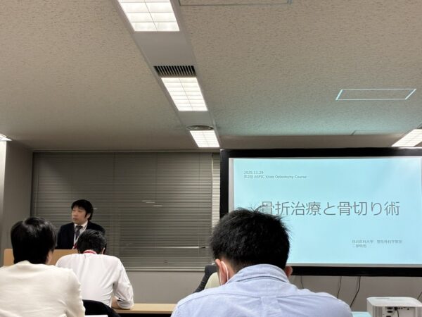 髙橋先生は変形性膝関節症概論、膝周囲骨切り術の術前術後診療について、二部先生は骨折治療と骨切り術について講演しました。